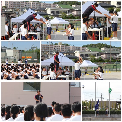 体育祭その13(9月14日) 公開日 2017/09/14 更新日 2017/09/14 学校の様子 全種目を終え、ほぼ予定通りの時刻に閉会式を行いました。2年生は2クラスが同点優勝となり、1つしかトロフィがなかったため、2クラスの代表が同時に受け取ることになりました。 いいね(0)