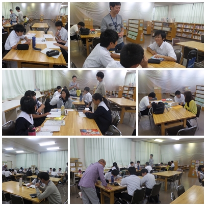 今日は5時間授業のためいつもより長い時間、図書室で放課後教室が実施できました。今日も、地域の方や大学生ボランティアの方が丁寧に生徒の質問に答えてくれていました。