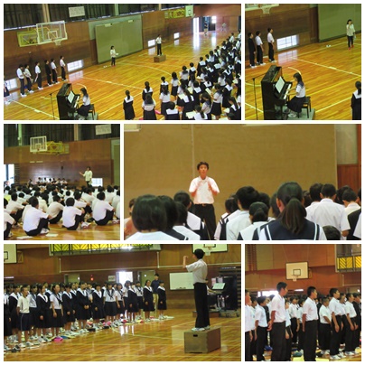 全校合唱練習(10月11日) 公開日 2017/10/11 更新日 2017/10/11 学校の様子 本日の6時間目に全校合唱の練習会を行いました。全校そろっての練習は初めてでしたが、繰り返し歌うことで、徐々に上達してきました。文化祭当日もきれいなハーモニーを響かせることができると思います。 いいね(0)