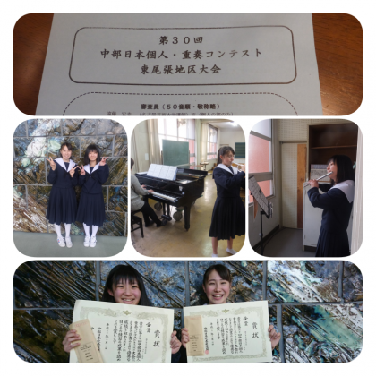 中部日本個人・重奏コンテスト東尾張地区大会(2月4日) 公開日 2018/02/04 更新日 2018/02/04 部活動・対外活動の様子 中部日本個人・重奏コンテスト東尾張地区大会個人の部が、昨日に引き続き日進市民会館大ホールで開催されました。本校吹奏楽部から、フルート独奏とトランペット独奏に出場しました。 二人とも、見事金賞を受賞し、その中の県大会出場者に選ばれました。おめでとうございます!!県大会は、3月4日に江南市民文化会館で開催されます。 いいね(0)