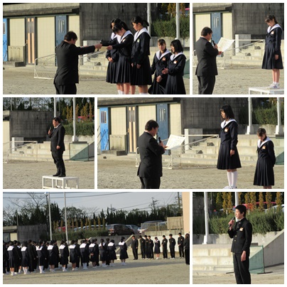 今日の集会では、最初に図書委員会からの表彰がありました。また、この土日に行われた吹奏楽部のコンテストの伝達表彰がありました。