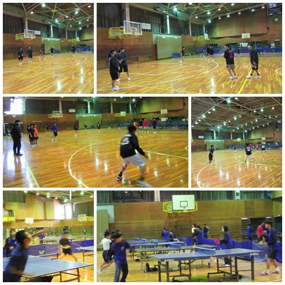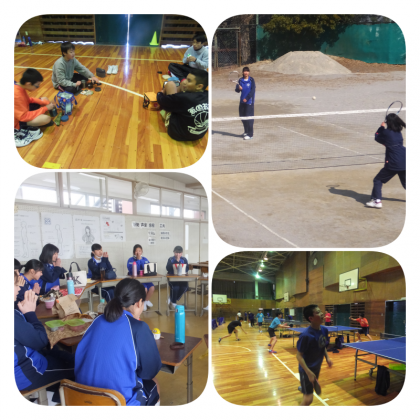 テスト中の停止期間が終わり、本日土曜日、活動をしています。体育館ではバスケット部と卓球部が、外ではテニス部が、校内では吹奏楽部か練習をしています。また、野球部は日進東中で練習試合をしています。