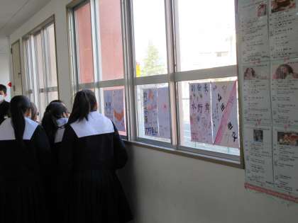 来年度前期の生徒会役員の選挙が9日(金)に予定されています。立候補の締め切りが終わり、ポスターがはられました。
