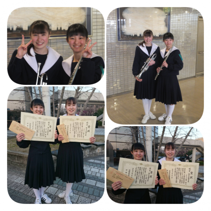 中部日本個人・重奏コンテスト愛知県大会(3月4日) 公開日 2018/03/04 更新日 2018/03/04 部活動・対外活動の様子 中部日本個人・重奏コンテスト愛知県大会が江南市民文化会館で開催されました。本校からフルート独奏とトランペット独奏に出場しました。見事な演奏でした。残念ながら本大会出場は逃しましたが、会場の聴衆を唸らす伸びのある音の演奏でした。 演奏中の撮影・録音は禁止されているため、会場へ入場する様子と演奏後の記念撮影、および表彰式後の写真を掲載しました。 いいね(0)