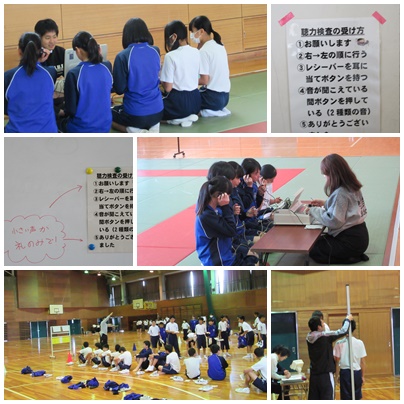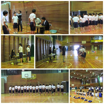 今日の1,2限に3学年とも身体計測を行いました。クラス毎男女別に分かれて、体育館や柔剣道場、職員会議室など測定場所に移動します。