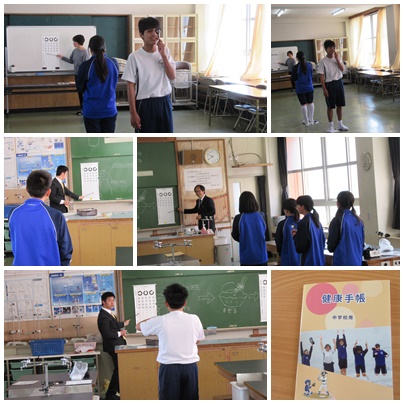 測定するものは、身長、体重、視力、聴力(2年生は除く)の4つを測定しました。測定後教室に戻り、健康手帳に測定結果を転記します。