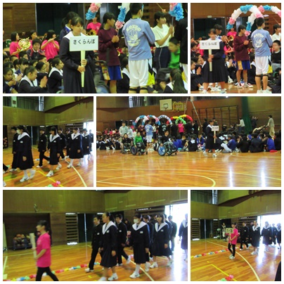 新入生を迎える会その1(4月16日) 公開日 2018/04/16 更新日 2018/04/16 学校の様子 本日5限6限生徒会主催で新入生を迎える会が行われました。さくらんぼ学園と合同です。今回のスローガンは「スカッとあいさつ〜いつでもさわやか光陵魂〜」です。 最初にさくらんぼの1年生を先頭に、光陵中の1年生が、2,3年生の拍手の中入場しました。 いいね(0)