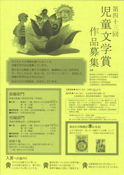 次のような団体主催の児童文学賞作品募集の要項が学校に送られてきました。