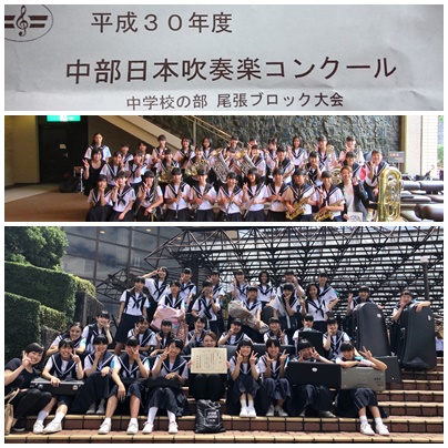 吹奏楽部は、本日瀬戸市文化センターで行われた中部日本吹奏楽コンクール尾張ブロック大会(小編成の部)に出演しました。昨年も一昨年もこのコンクールでは銀賞でした。目標である「金賞」そして「県大会出場」を目指し課題曲である行進曲「空のエース」を演奏しました。ホールに美しい演奏を響き渡らすことができ、見事「金賞」を獲得することができました。残念ながら、県大会出場(金賞3校中1校のみ)には至りませんでしたが、26日に行われる朝日吹奏楽コンクールで地区大会を突破してもらいたいと思います。