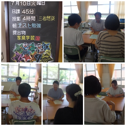 個人懇談会(7月10日) 公開日 2018/07/10 更新日 2018/07/10 学校の様子 本日より3日間、個人懇談会を行っています。1,2年生は二者懇談会、3年生は三者懇談会で実施してます。本日は大変暑い中ご来校くださり、誠にありがとうございました。 いいね(0)