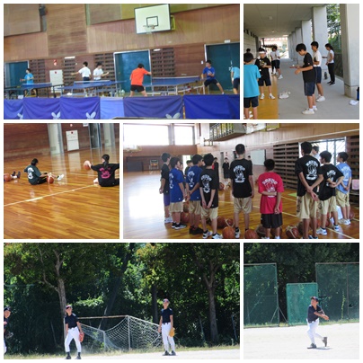 部活動(7月23日) 公開日 2018/07/23 更新日 2018/07/23 学校の様子 本日の午前中、6つの部が活動しています。 体育館では、バスケットボール部、卓球部が、運動場では、ラグビー部と野球部が、校舎内では吹奏楽部と英語部が活動しています。 いいね(0)