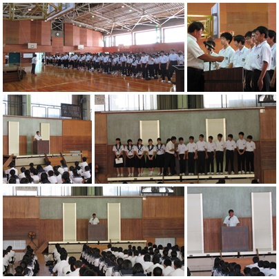 2学期始業式(9月3日) 公開日 2018/09/03 更新日 2018/09/03 学校の様子 2学期の始業式を体育館で行いました。時間前に移動を完了することが出来ました。 最初に夏休み後半に行われた卓球部の大会の伝達表彰を行いました。 続いて行われた始業式で、校長から、夏休みの部活動の大会の様子や2学期に向けて「チーム力を高める」「命を大切にする」ことについて話がありました。 いいね(0)