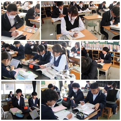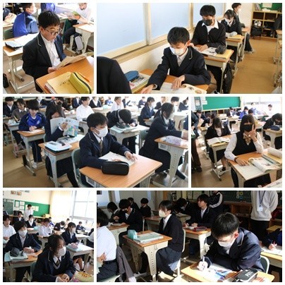 今日の授業の様子です。1年生は英語と数学、2年生は国語と数学、3年生は英語と音楽でした。