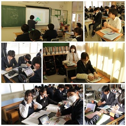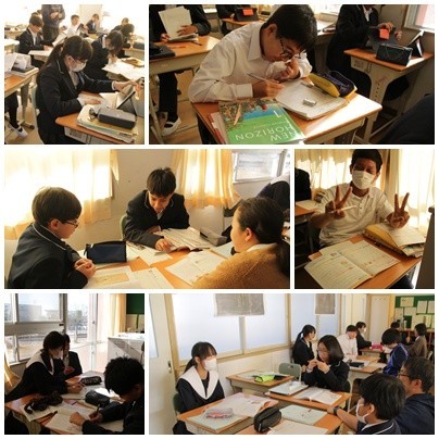 今日の授業の様子です。1年生は英語と数学、2年生は国語と数学、3年生は英語と音楽でした。
