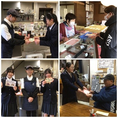 生徒たちは、自分がどのようなコンセプトでPOPを制作したのかを、お店の方に直接説明しながらお渡ししました。お店の方も大変喜んでくださり、生徒たちもとても嬉しそうでした。