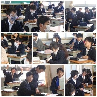 昨日、本日の授業の様子です。3年生の教室は受験の生徒がいたため少し空席がありました。1年中で一番寒い季節がそろそろやってきます。みんなで乗り切りましょう。
