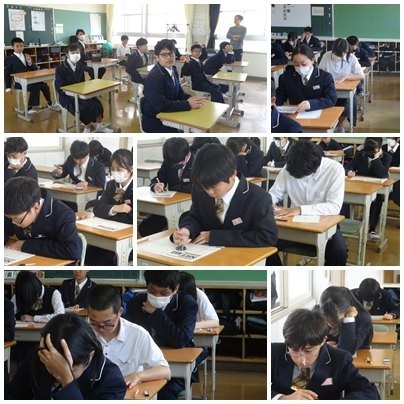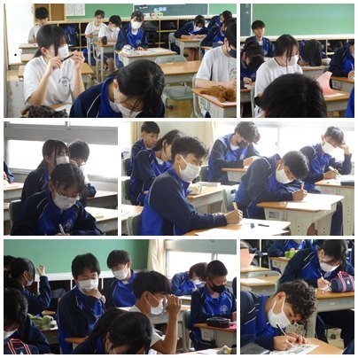 今日の授業の様子です。1年生は理科と社会、2年生は数学と家庭科の調理実習、3年生は、ほとんどの生徒が受検のため映画を見ていました。