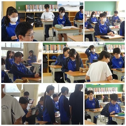 今日の授業の様子です。1年生は国語と社会、2年生は英語と理科、3年生は卒業式の練習に取り組んでいました。