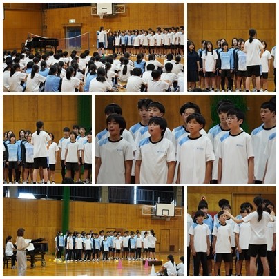 本日、2年生が学年合唱の隊形作りや練習を体育館で行いました。昨年度から成長した姿が、よい合唱を創りあげようという意気込みから感じられました。残り10日ほどで、さらに、成長した姿がみられるのかとても楽しみです。