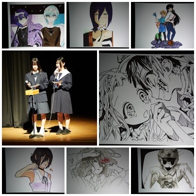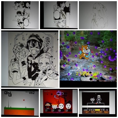 次に行われたコンピュータ・アート部は、「イラスト」「プログラミング」など、活動の成果を全校生徒にしってもらうよい機会となり、多くの生徒が発表を楽しんでいました。