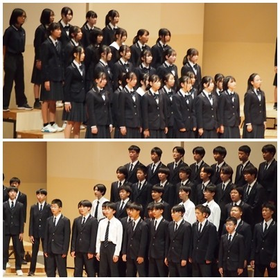 クラスで心をひとつに賞を目指して取り組んできた合唱コンクール、1学期から練習してきた指揮者・伴奏者の生徒への感謝の思いをもって精一杯に各クラスが努力をしてくれました。そして、何よりも3年生の学年合唱は言葉では言い表せない合唱でした。素晴らしい文化祭をつくりあげてくれたことに感謝します。