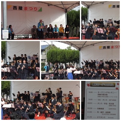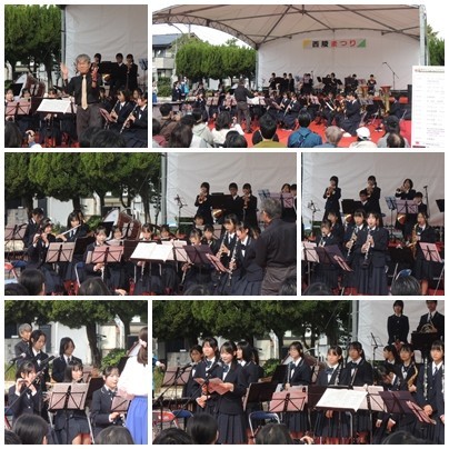 秋らしい気候の中、「第20回西陵まつり」が開催され、本校吹奏楽部が出演しました。1・2年生だけで編成して臨む最初の演奏は、子どもから大人まで楽しめる曲を多くの方々に聴いていただきました。 西陵まつりは、今年も多くの生徒や卒業生が訪れ、賑わいをみせています。