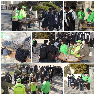 今朝は、少年センター水野支部の方々から生徒へ軍手を配布していただきました。明日のクリーン活動では、その軍手をはめて自宅周辺から学校までの道のりでゴミ拾いを行います。拾ってきたゴミは学校で分別して回収します。