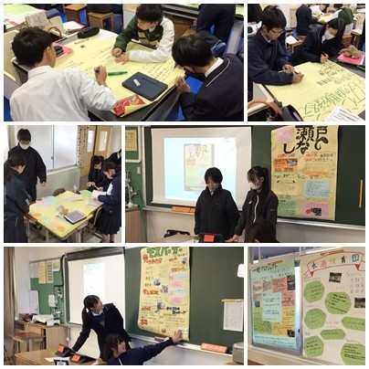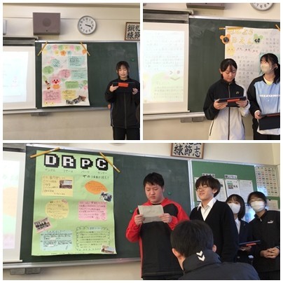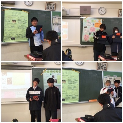 12月初旬に実施した職場体験学習のまとめを行いました。それぞれの仕事の内容を伝え、その仕事のやりがいや苦労など、体験したことや聞いたことをまとめて発表しました。