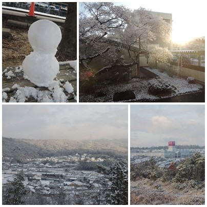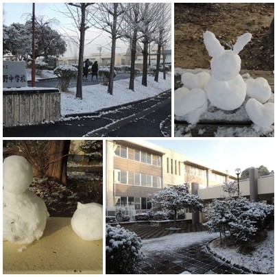 昨晩からちらついた雪は薄らと積もり、登校しながら雪玉を作る姿も見られました。校舎内には持ち込まないように、ベンチにそっと置かれていました。