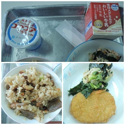 本日の給食は、瀬戸市産の食材を使った「アレッタ入りおひたし」「かぼちゃコロッケ」「瀬戸のごも」「ヨーグルト、牛乳」でした。本日で全国学校給食週間は終了しますが、これからも給食に感謝しながらおいしくいただきたいと思います。