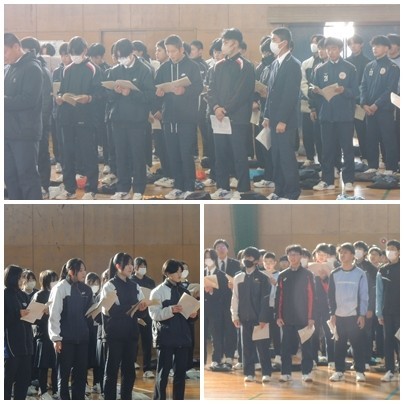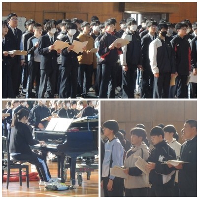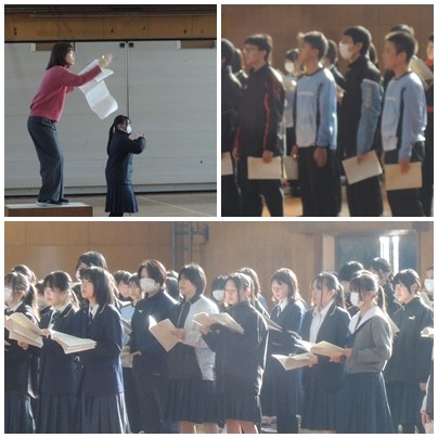 2月も中旬となり、3年生では、「卒業まで、あと・・・」と登校できる日数が話題に出てくるようになりました。卒業式まで3週間あまり、合唱にも少しずつ熱が入ってきました。