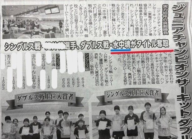 水野中学校に関わった方にはなじみのある「水中魂」、先日のスポーツ新聞に「水中魂がタイトル奪取」とありました。本校の在校生と卒業生が、ペアを組んでボーリング大会に出場し、見事にダブルスで優勝を果たしました。いつまでも水中魂が心の中にあり続けるのはうれしいことです。