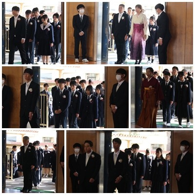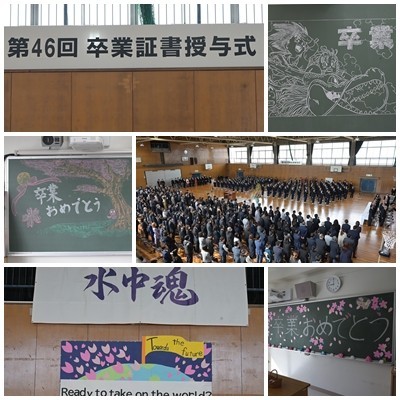本日、令和7年度 第46回卒業証書授与式を行いました。凜とした姿で卒業生が体育館に入場し、国歌斉唱にはじまり、校長から一人一人に卒業証書が手渡しされました。緊張感をもちながら、しっかり返事をして、証書を受け取りました。