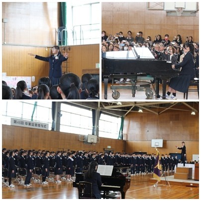 「留別の歌」(花)の合唱は、3年生の心がひとつとなった歌声が体育館に響き渡ったとともに、3年間の想いが保護者の方々、来賓の方々、教職員にしっかりと届けられました。最後に校歌を歌って、式のすべてが終わりました。水野の伝統が、しっかりと引き継がれていることを感じたすばらしい時間でした。