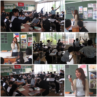 マリー先生の出身国のフィリピンにちなんだクイズに答えて,班対抗でポイントを競うというアクティビティーです。