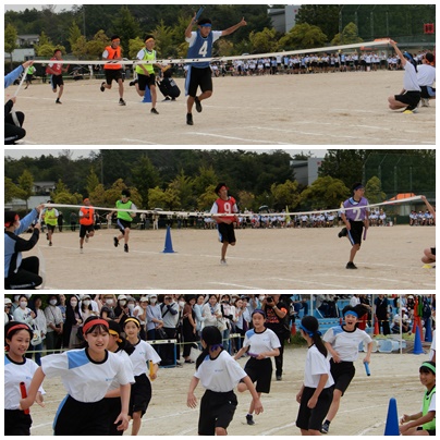 女子は1走50m、2・3走が100m、アンカーは150m走りました。男子は1走100m、2・3走が200m、アンカーは300m走りました。2学期に開催していたときよりも3年生が部活動を引退していないため、最後までスピード感あふれる走りが見られました。