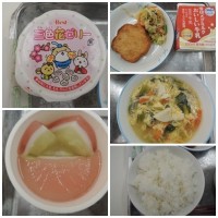 本日が今年度の最後の給食となりました。「あいちの米粉パン・クリームシチュー・ハン...